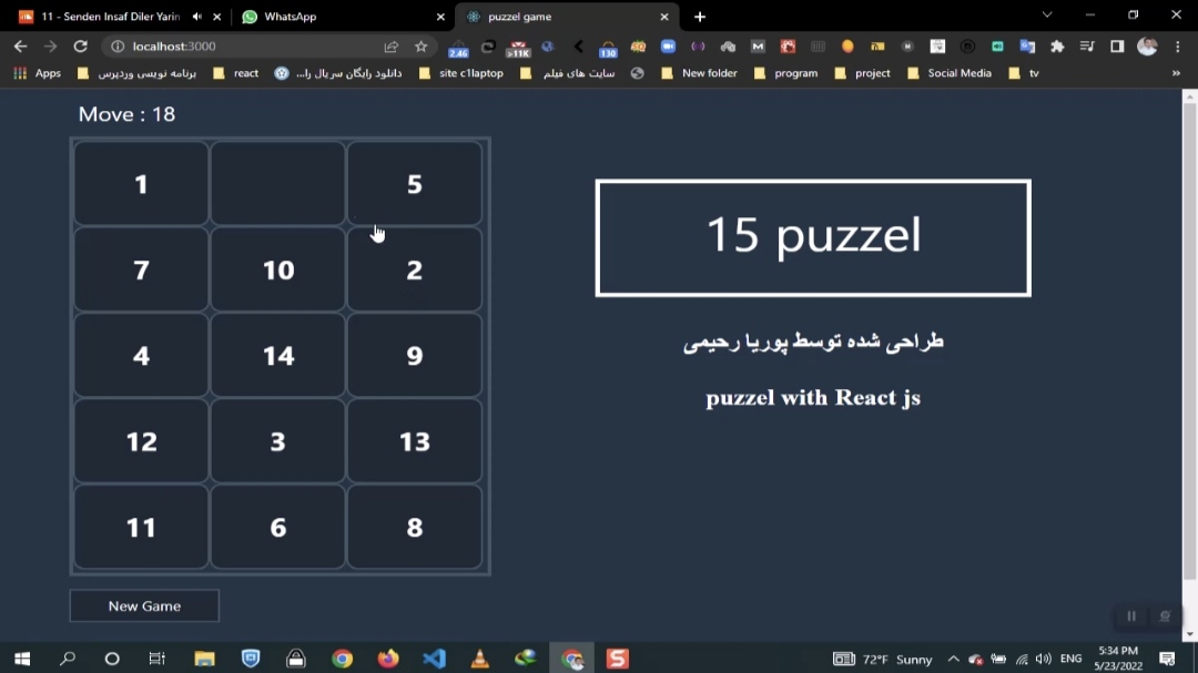 Squid Game (Early Programming Learning): Objective: Design and implement a game inspired by the Squid Game series. Challenges & Achievements: Complex Situation Analysis: Understanding and implementing challenging game mechanics. Advanced Algorithmic Thinking: Designing efficient algorithms for game rules and player movements. Multiplayer Game Design: Creating a two-player mode that offers an enjoyable and competitive experience. Deep Game Programming Learning: Gaining practical experience in coding for game development during the early stages of learning. Puzzle Game (for Bamdad Company Recruitment): Objective: Develop a puzzle game as part of the recruitment process. Challenges & Achievements: Array Manipulation: Implementing game logic effectively using array data structures. Memory & Index Management: Precisely guiding elements within the array and enabling movement via clicks to empty indices. Algorithmic Optimization: Intelligently finding empty slots and correctly arranging elements to solve the puzzle. User Experience Focus: Ensuring game mechanics are clear and intuitive for the user.
